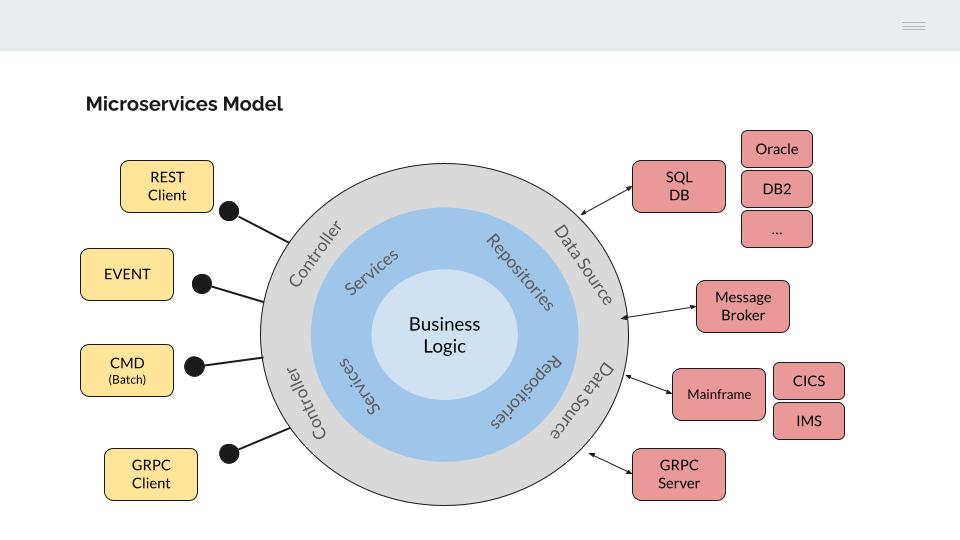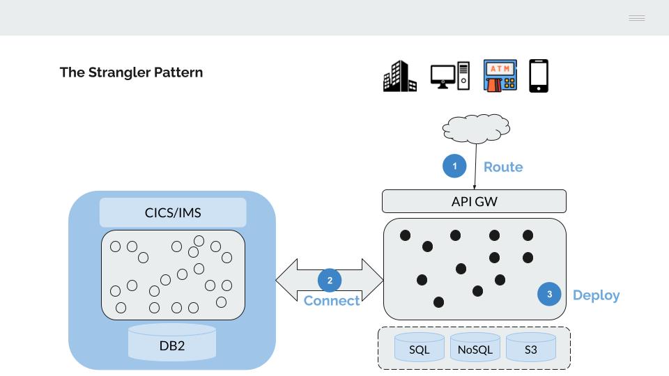 Mainframe applications can be redesigned, rewritten (java, python, go, …) and deployed as microservices. By enabling cross-platform coexistence through two basic mechanisms, these new microservices can be deployed incrementally;
